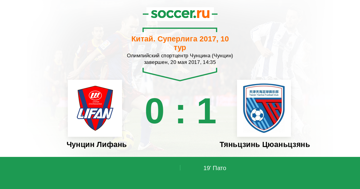 19' (0:1) Пато (10) (Ли Чингчан (29))