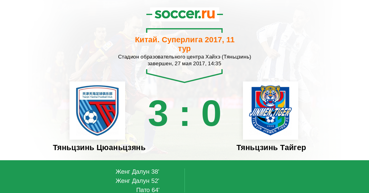 64' (3:0) Пато (10) (Чжао Хури (7))