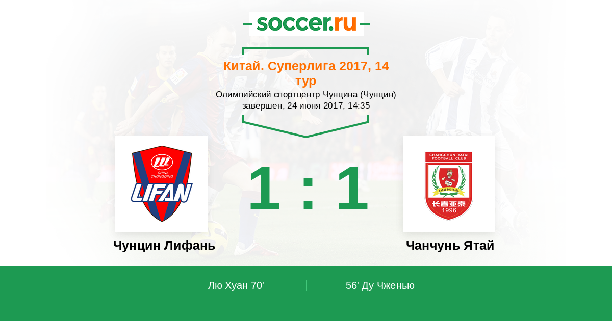 70' (1:1) Лю Хуан (19) (Фернандиньо (32))