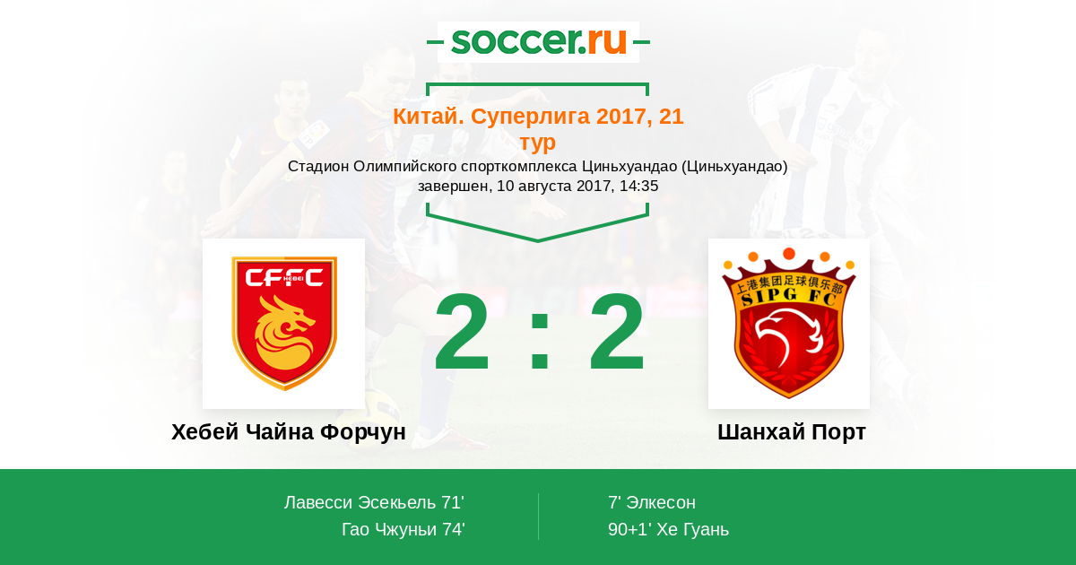 90+1' (2:2) Хе Гуань (28) (Халк (10))