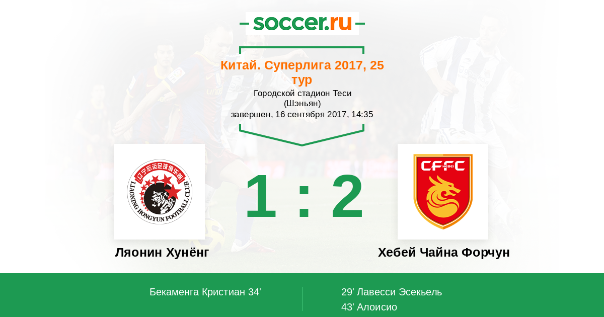 29' (0:1) Лавесси Эсекьель (22) (Инь Хонгбо (15))