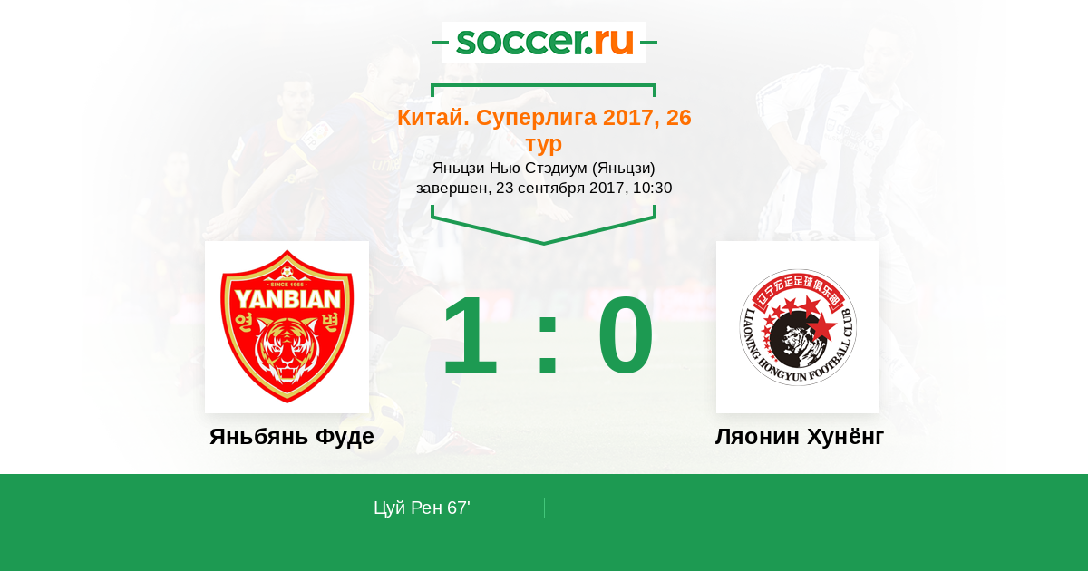 67' (1:0) Цуй Рен (11) (Хан Гуангхуй (7))