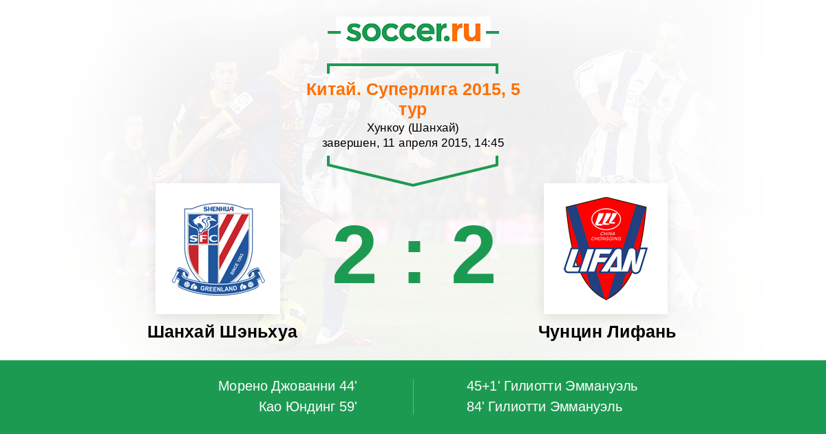 84' (2:2) Гилиотти Эммануэль (33) (Ванг Донг (6))