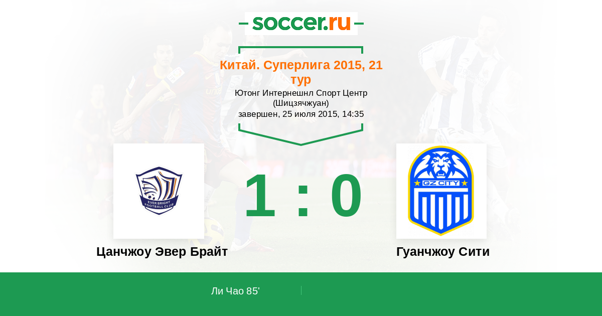 85' (1:0) Ли Чао (4)