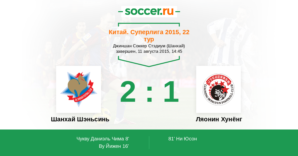 81' (2:1) Ни Юсон (18) (Чжанг Е (8))