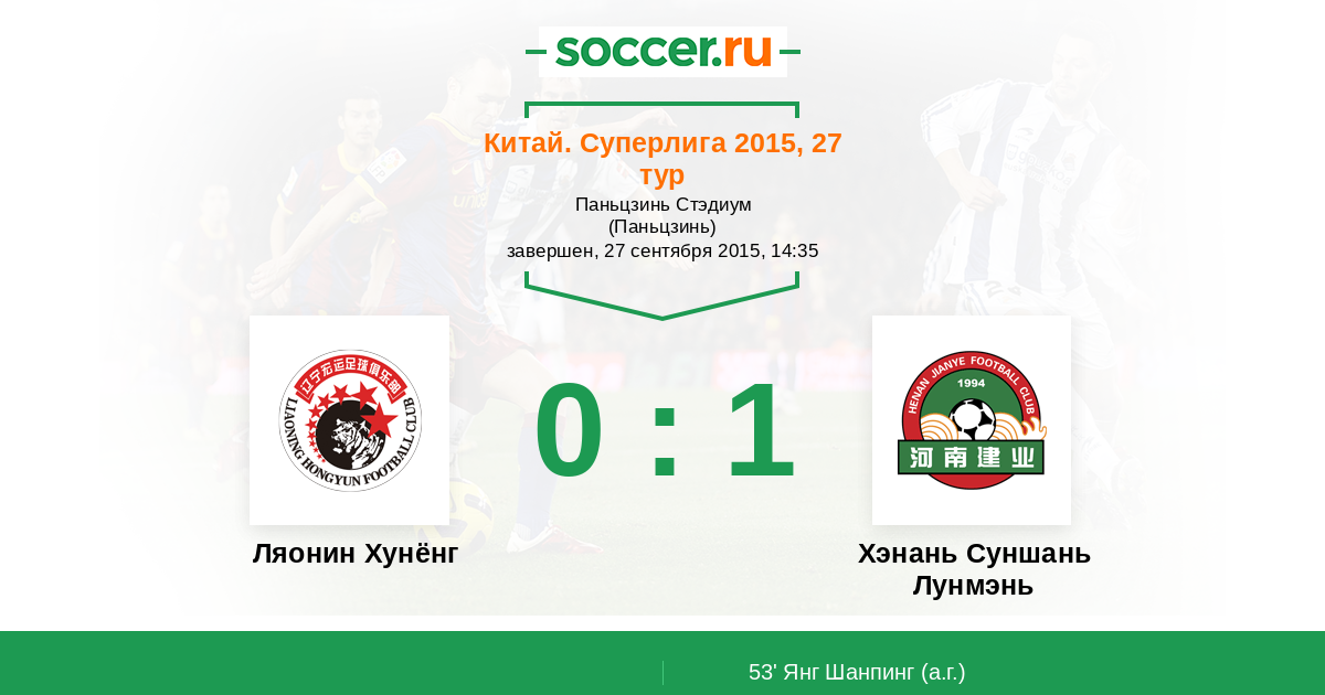 53' (0:1) Автогол Янг Шанпинг (5)