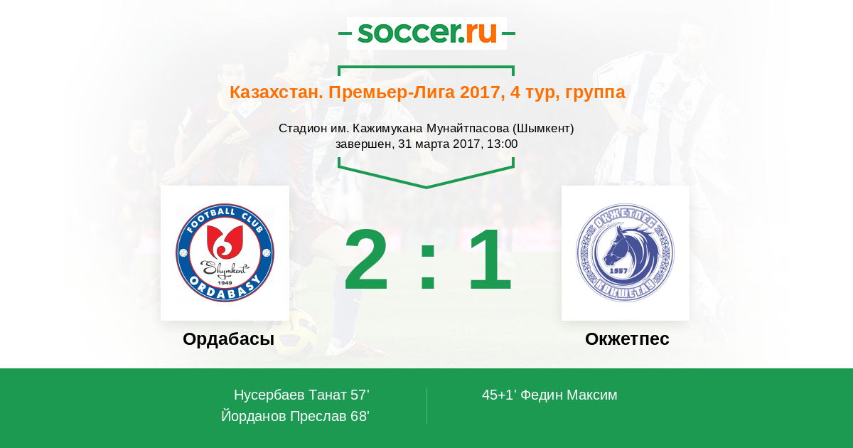 Запасные: Йорданов Преслав (с 46'), Бейсенов Бекзат (с 66'), Марцваладзе Отар (с 80'), Булешев Алибек, Кожабаев Багдаулет, Аширбеков Кайрат, Абдулин Ренат, Нурмухаметов Рамиль, Адырбеков Талгат