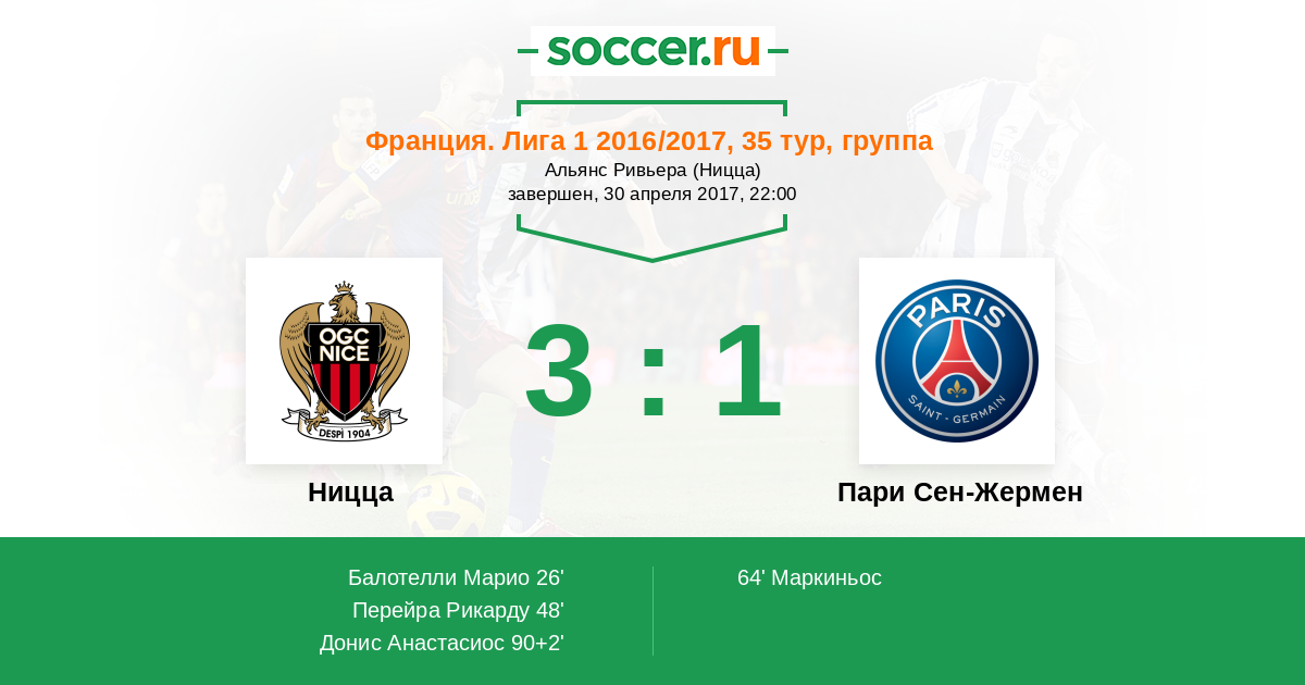 26' (1:0) Балотелли Марио (9) (Перейра Рикарду (21))