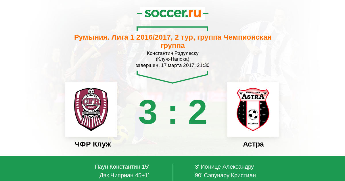 Запасные: 23 Илиев Пламен (с 26'), 7 Белу-Йордаче Клаудиу (с 42'), 11 Флоря Даниэль (с 72'), 9 Бус Сергиу, 15 Орош Кристиан, 19 Мансали Бубакар, 71 Пициан Андрей