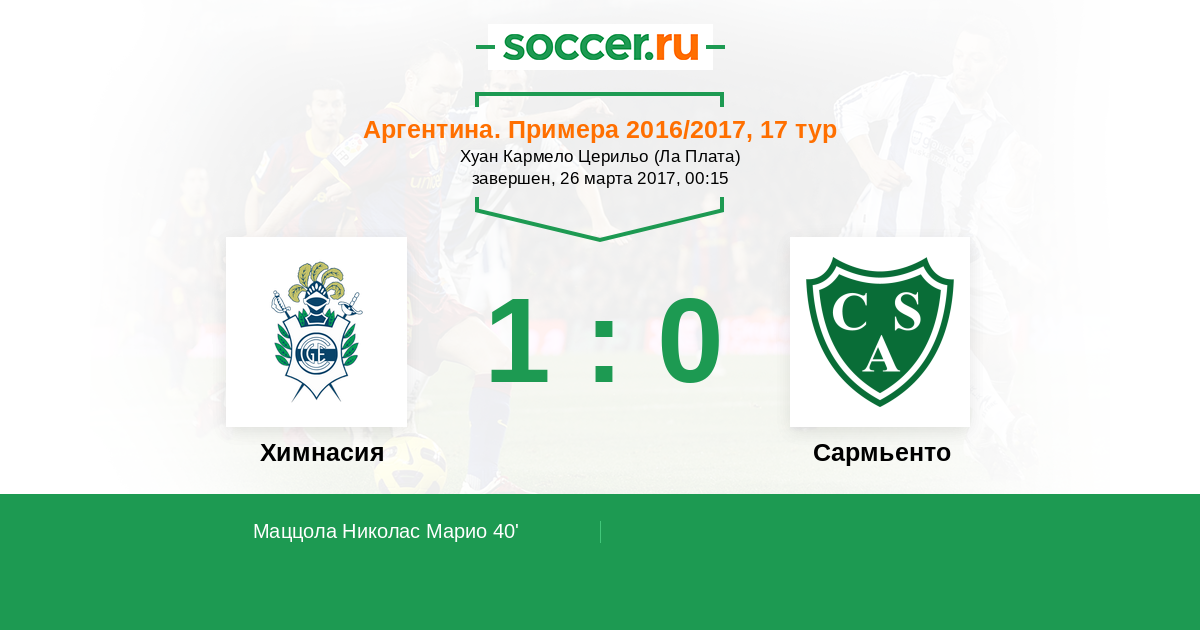 40' (1:0) Маццола Николас Марио (12) (Фаравелли Лоренцо (8))