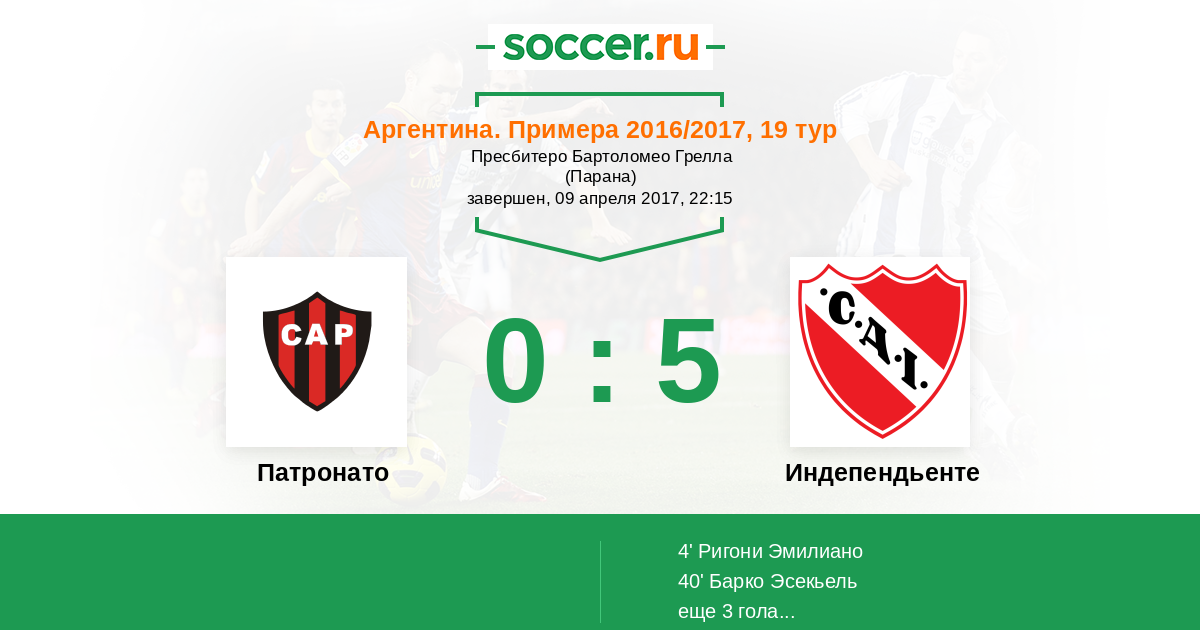 40' (0:2) Барко Эсекьель (27) (Ригони Эмилиано (24))