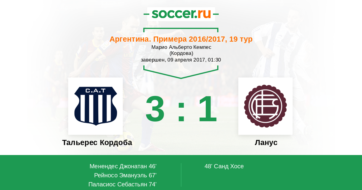 74' (3:1) Паласиос Себастьян (34)