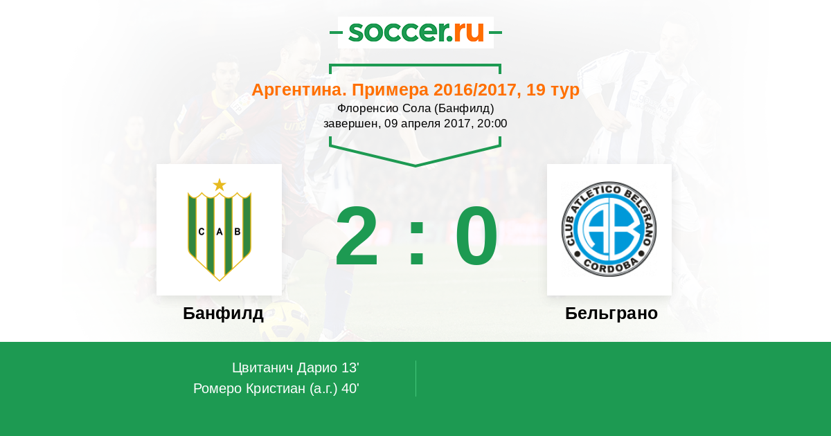 40' (2:0) Автогол Ромеро Кристиан (17)