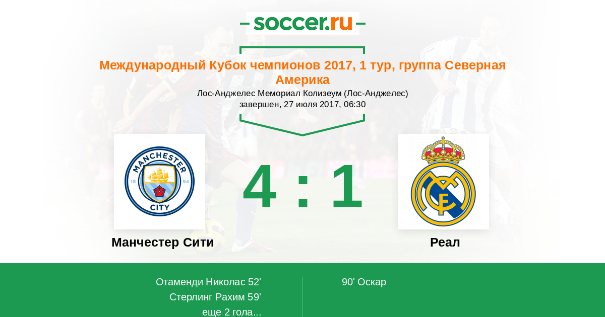 Запасные: 11 Насри Самир (с 46'), 5 Мангала Эльяким (с 46'), 7 Стерлинг Рахим (с 46'), 35 Зинченко Александр (с 46'), 55 Диас Браим (с 46'), 81 Духани Демеако (с 70'), 19 Сане Лерой (с 80'), 53 Адарабиойо Тосин (с 80'), 27 Робертс Патрик (с 80'), 79 Гримшоу Даниэль (с 80'), 49 Мурич Ариджанет, 8 Гюндоган Илкай, 21 Сильва Давид, 22 Менди Бенжамен, 25 Фернандиньо, 64 Латибодье Жоэль