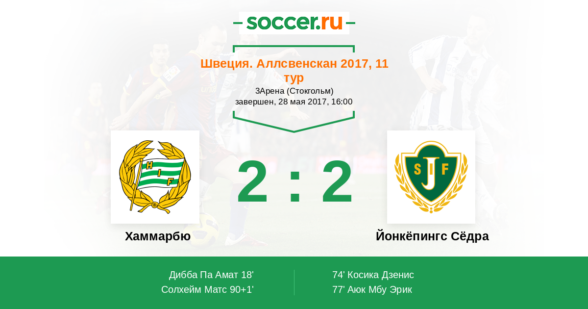 90+1' (2:2) Солхейм Матс (77) (Смарасон Арнор (11))