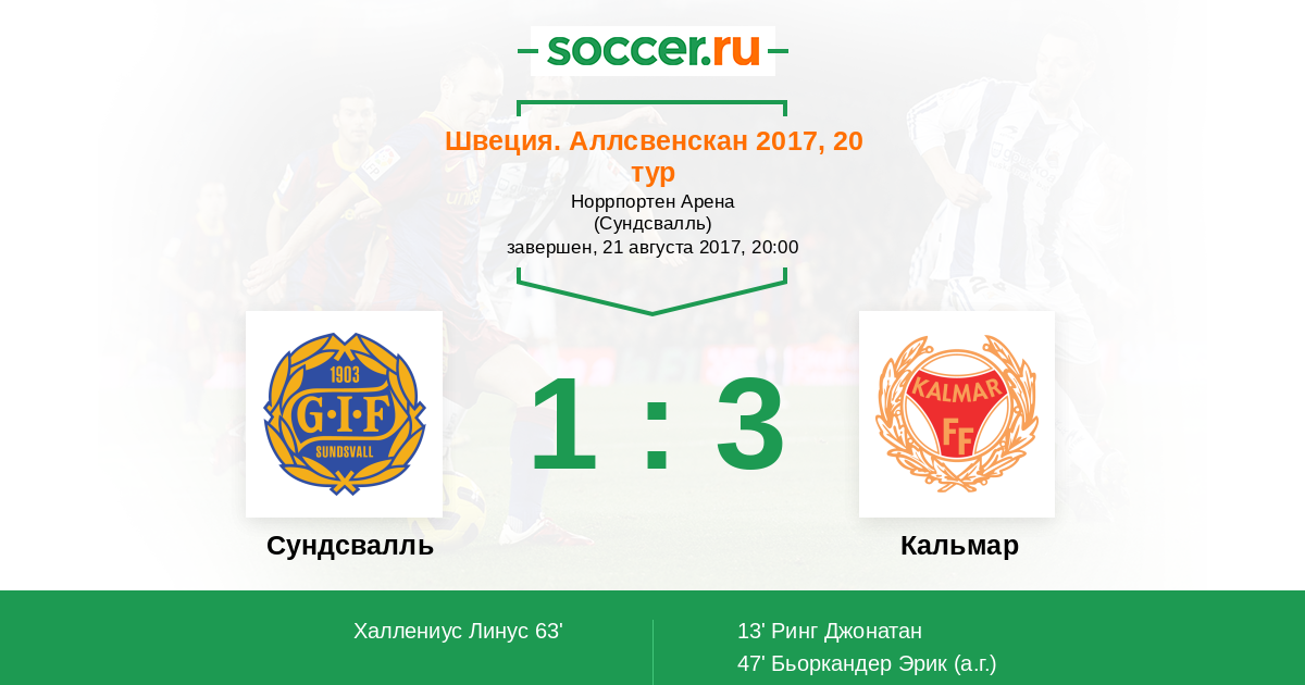 63' (1:3) Халлениус Линус (9)