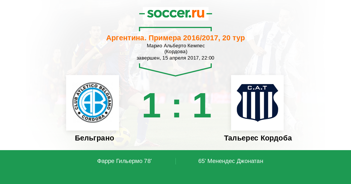 78' (1:1) Фарре Гильермо (5)