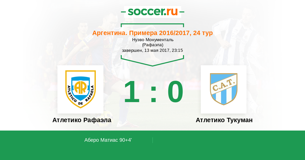 90+4' (1:0) Аберо Матиас (16) (Мартино Анхело (35))