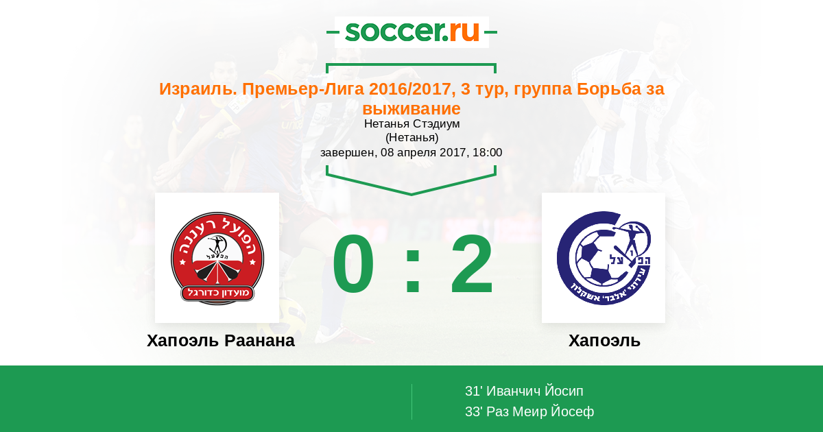 33' (0:2) Раз Меир Йосеф (91)