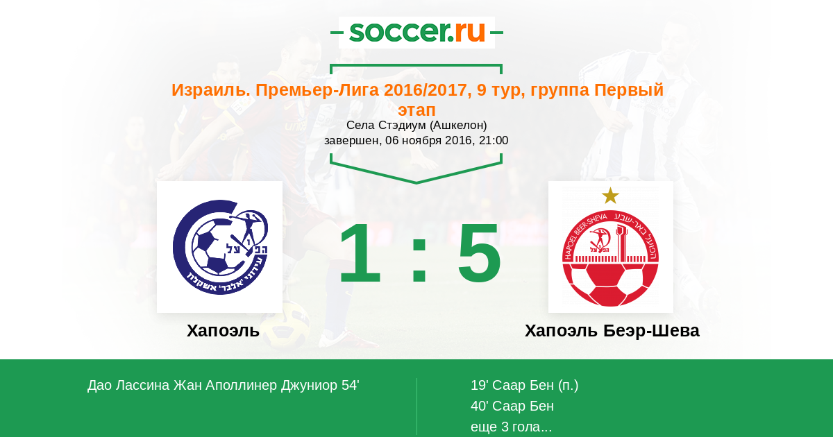 Запасные: 24 Абу Хазира Мойша (с 33'), 7 Суисса Томер (с 60'), 16 Хадад Руди (с 66'), 3 Хаим Изрин, 17 Хозез Матан, 18 Лугаси Моше, 22 Хедриан Лиор