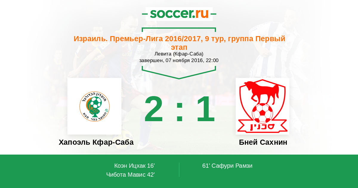 Запасные: 18 Фадида Амар (с 65'), 23 Гай Хадид (с 81'), 4 Хаваз Бен (с 90'), 17 Грабли Бен, 22 Леви Томер, 55 Вейцман Бен, 89 Скавыш Максим