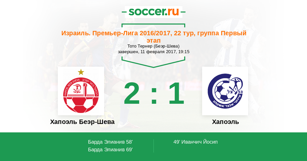 Запасные: 10 Барда Элианив (с 9'), 19 Зрихан Нив (с 55'), 15 Броун Владимир (с 86'), 17 Охайон Матан, 20 Таха Лоаи, 55 Хаймов Гай