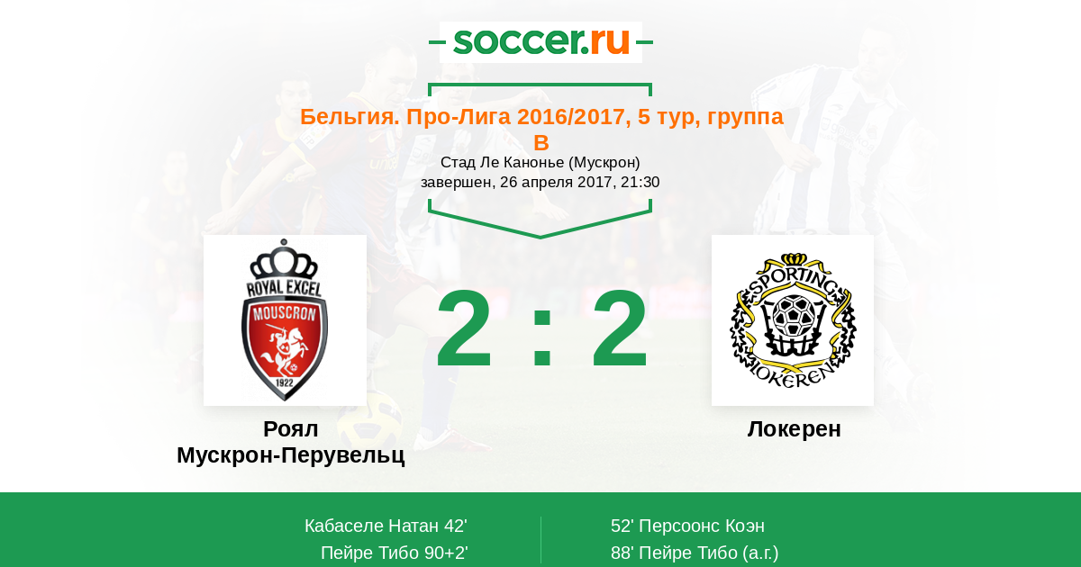 Запасные: 35 Стретман Боб (с 54'), 9 де Суттер Том (с 76'), 25 Нинай Бранислав (с 90+2'), 1 Барри Бубакар, 3 Анса Юджин, 27 Монсекур Арно, 29 Эно Льюис