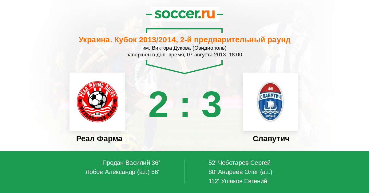 80' (2:2) Автогол Андреев Олег