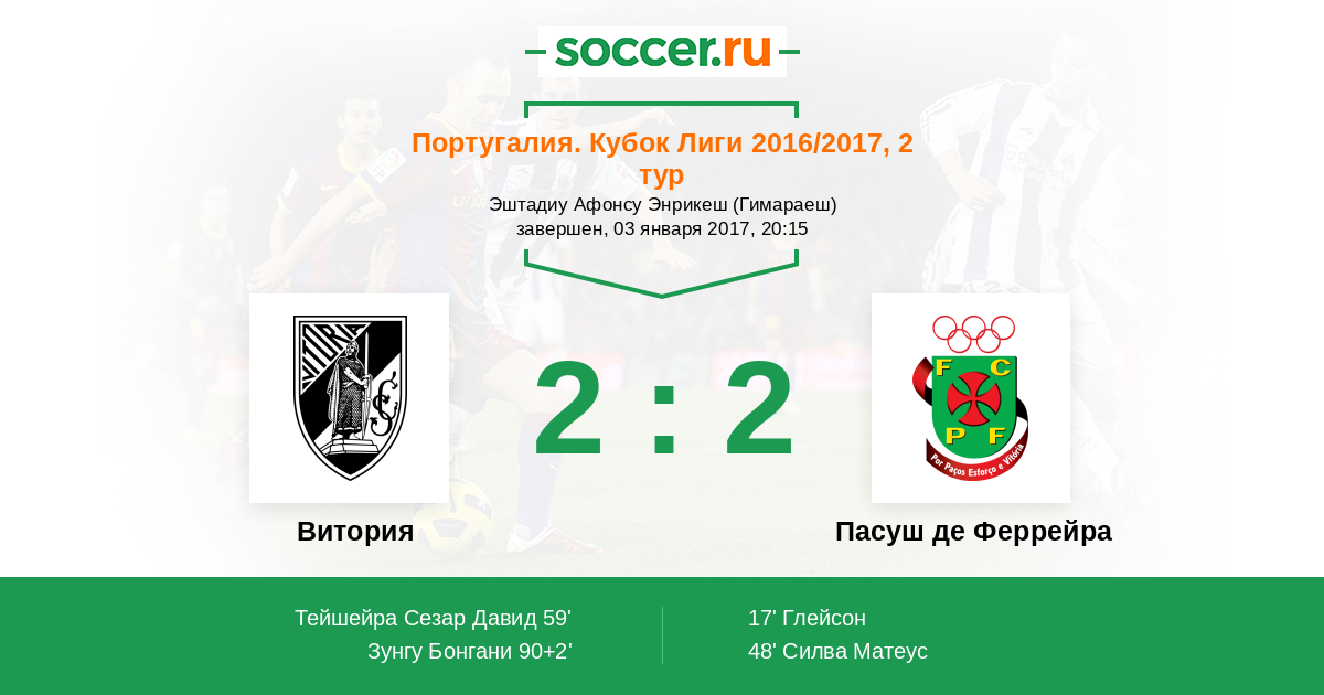 59' (1:2) Тейшейра Сезар Давид (91) (Тикиньо (18))