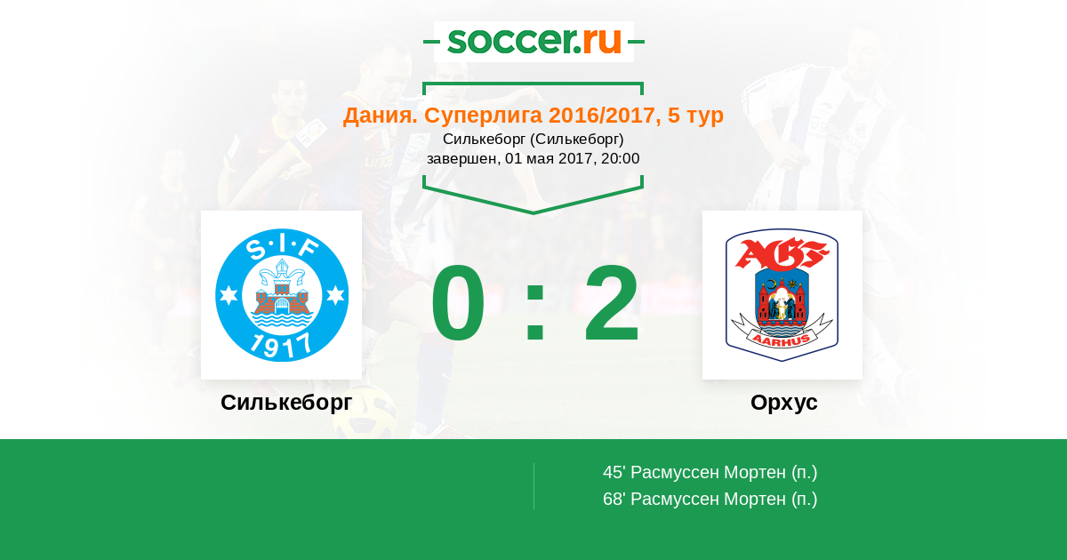 45' (0:1) Расмуссен Мортен (13)