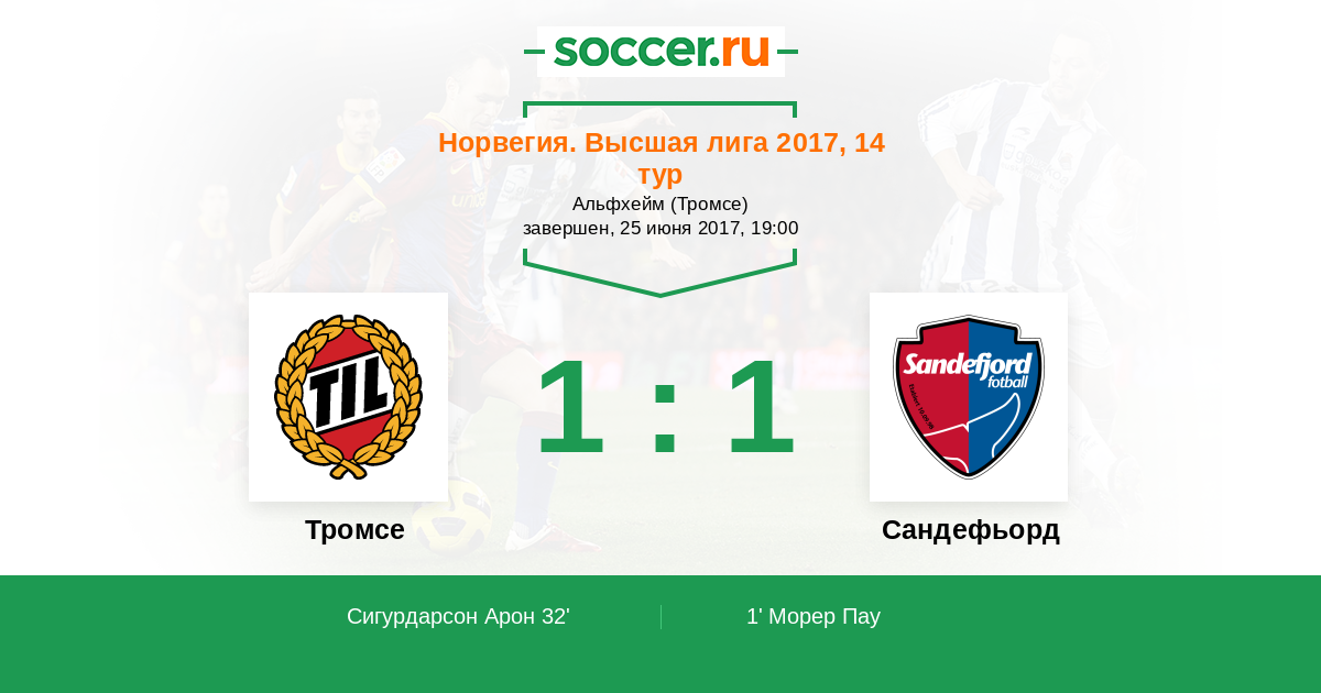 32' (1:1) Сигурдарсон Арон (17) (Педерсен Мортен Гамст (7))