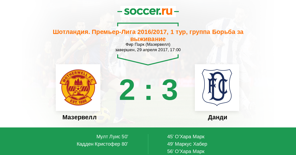 45' (0:1) О'Хара Марк (14)