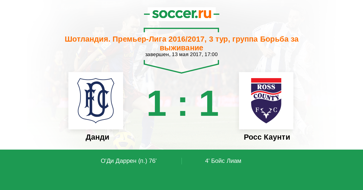 4' (0:1) Бойс Лиам (10) (Вудс Мартин (8))