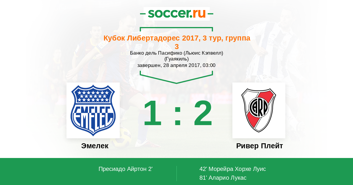 2' (1:0) Пресиадо Айртон (18) (Маркос Мондаини (8))