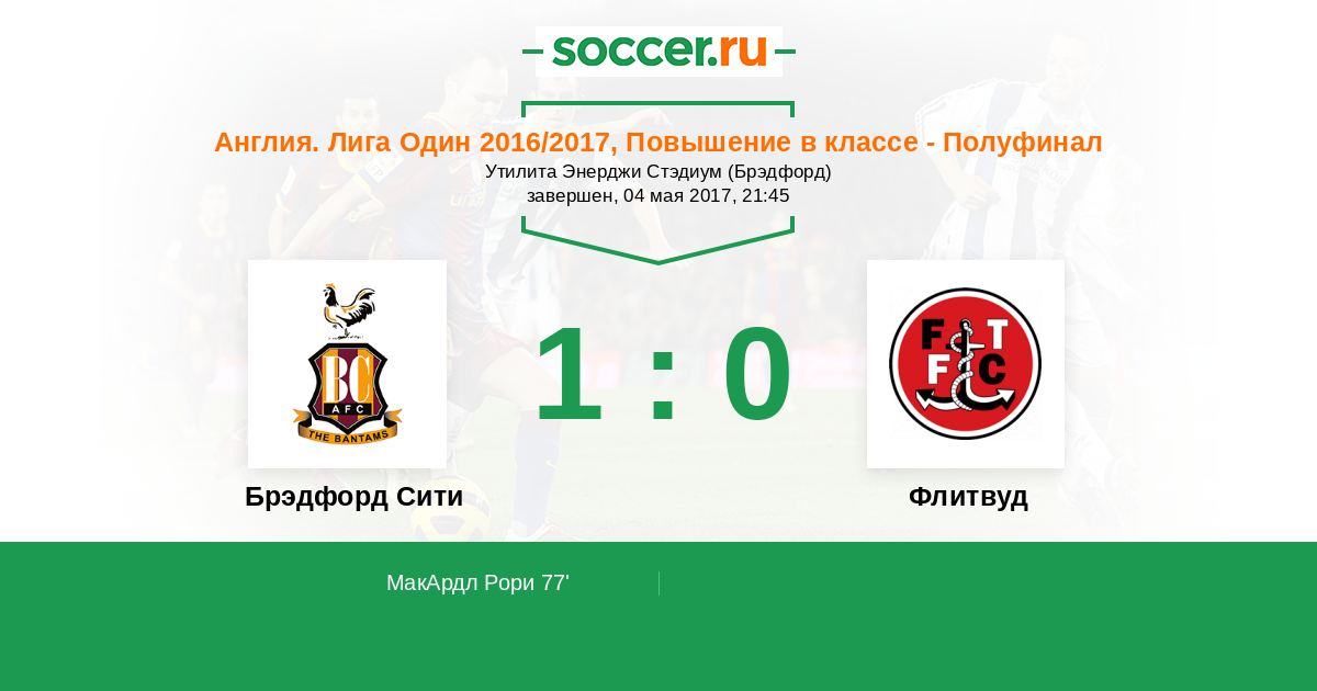 77' (1:0) МакАрдл Рори (23) (МакМэхон Энтони (29))
