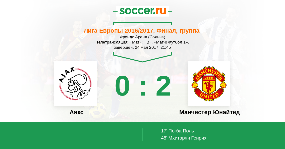 17' (0:1) Погба Поль (6) (Феллаини Маруан (27))