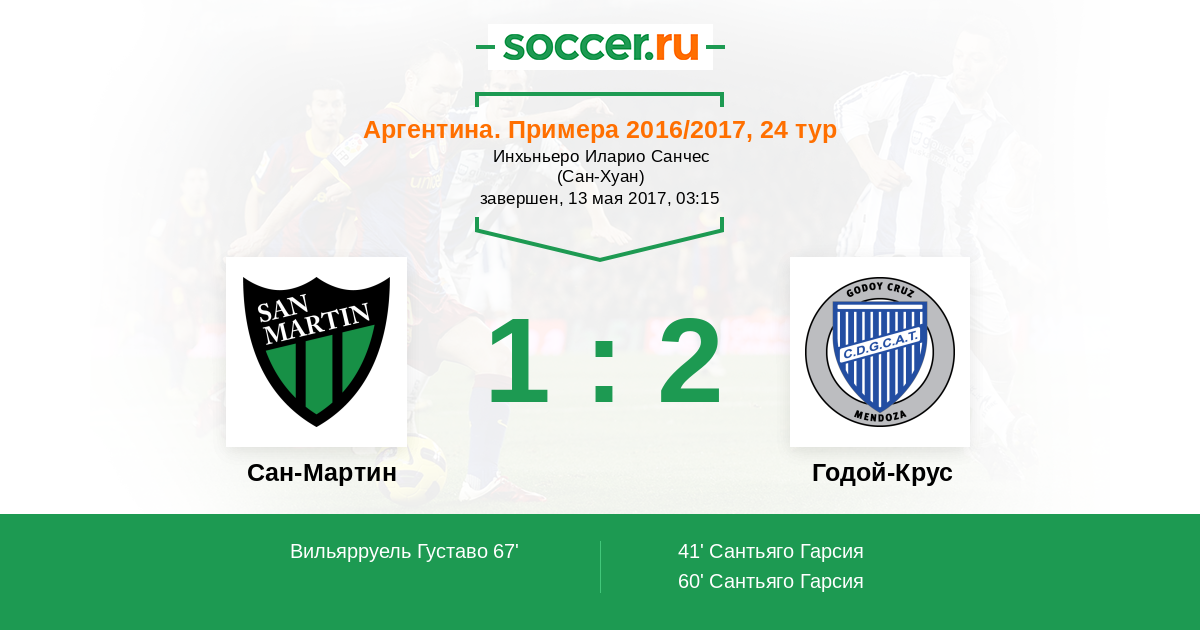 60' (0:2) Сантьяго Гарсия (18) (Хименес Гастон (10))