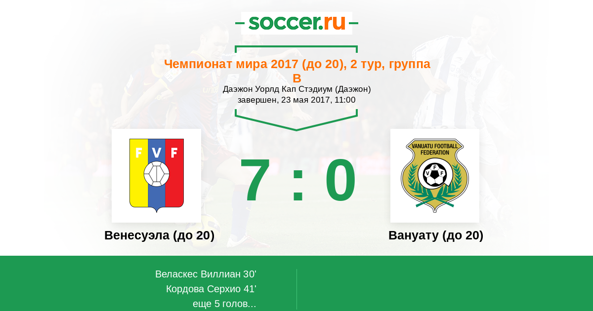 30' (1:0) Веласкес Виллиан (2) (Пеньяранда Адальберто (7))