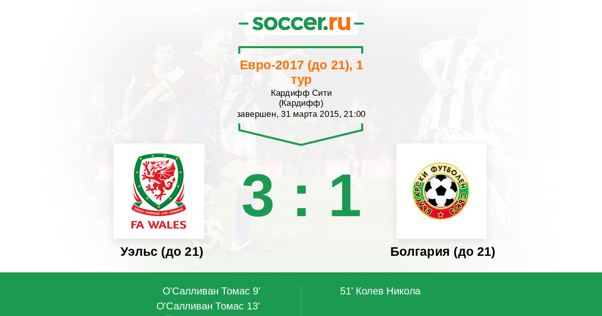 Уэльс (до 21) - Болгария (до 21)