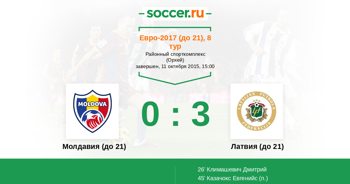 Запасные: Мордатенко Анастасий (с 58'), Сармис Стуглис Ингарс (с 71'), Тиденбергс Эдуардс (с 85'), Безушконокс Денис, Икаунекс Давис, Осс Дэвис, Юрковскис Райвис