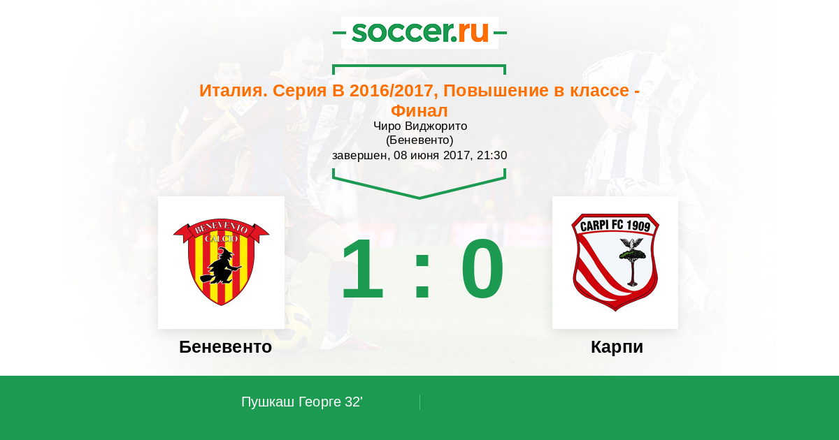 32' (1:0) Пушкаш Георге (24) (Венути Лоренцо (23))