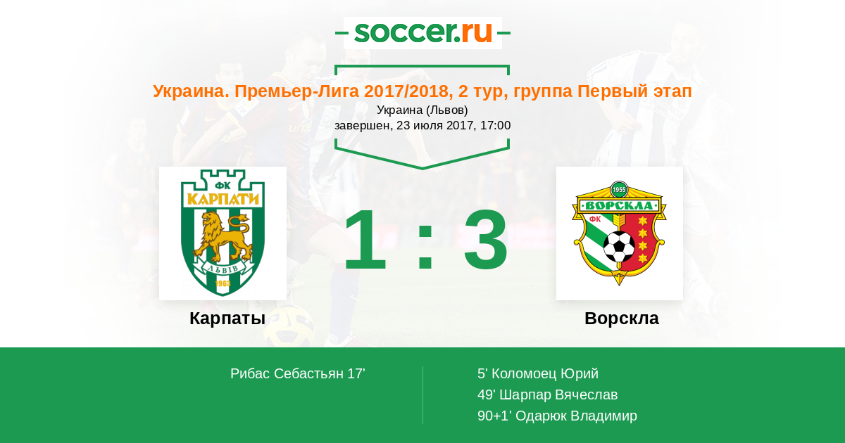 17' (1:1) Рибас Себастьян (45) (Худобяк Игорь (16))