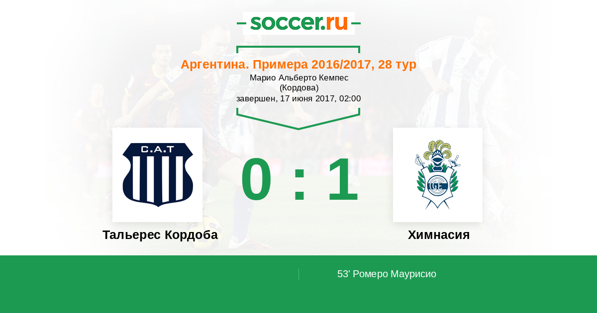 53' (0:1) Ромеро Маурисио (26) (Алеман Брайан Милтон (30))
