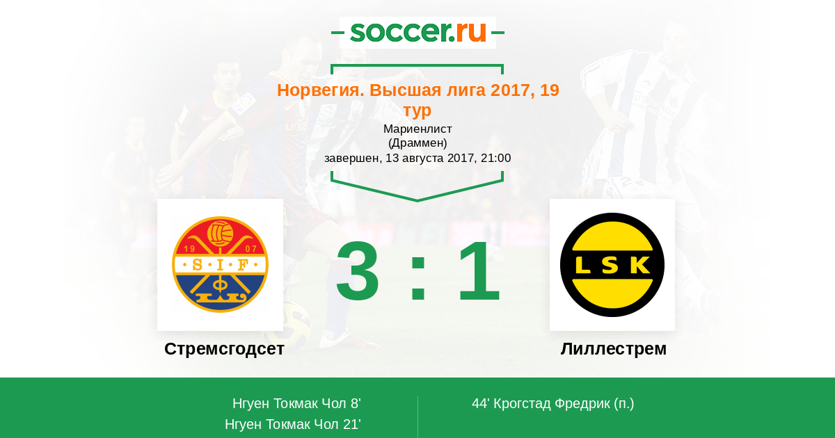 8' (1:0) Нгуен Токмак Чол (93) (Петтерсен Эспен-Бугге (1))
