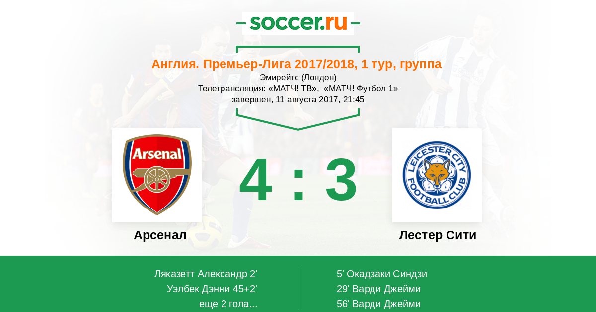 2' (1:0) Ляказетт Александр (9) (Эль-Нени Мохамед (35))