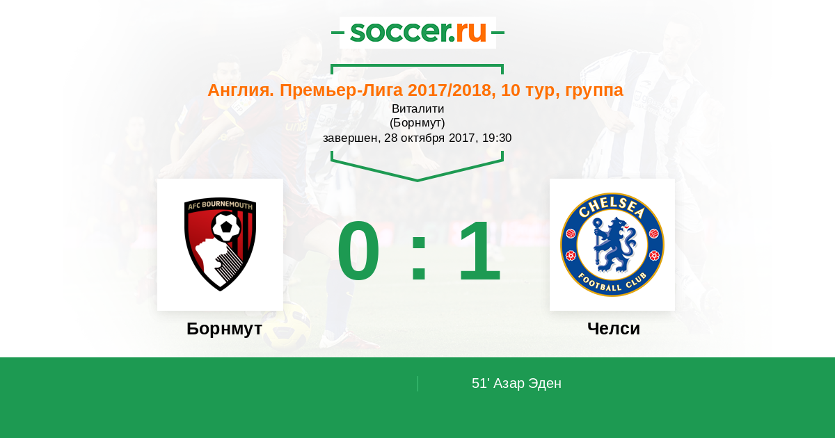 51' (0:1) Азар Эден (10) (Мората Альваро (9))