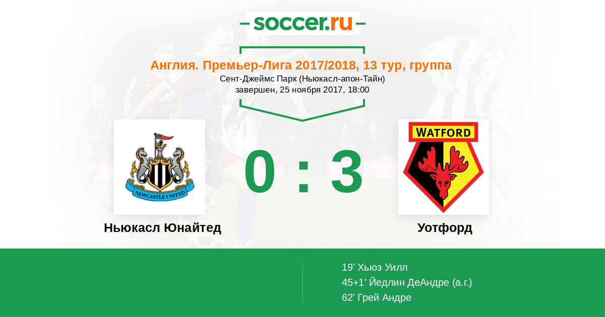 19' (0:1) Хьюз Уилл (19) (Зегелар Марвин (22))