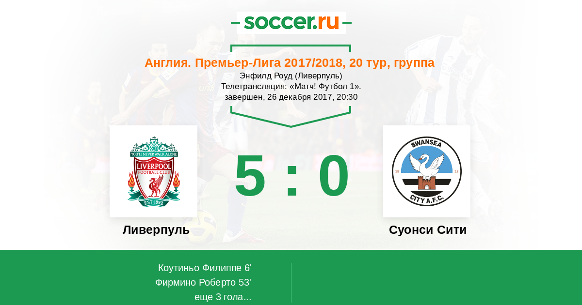 6' (1:0) Коутиньо Филиппе (10) (Салах Мохамед (11))
