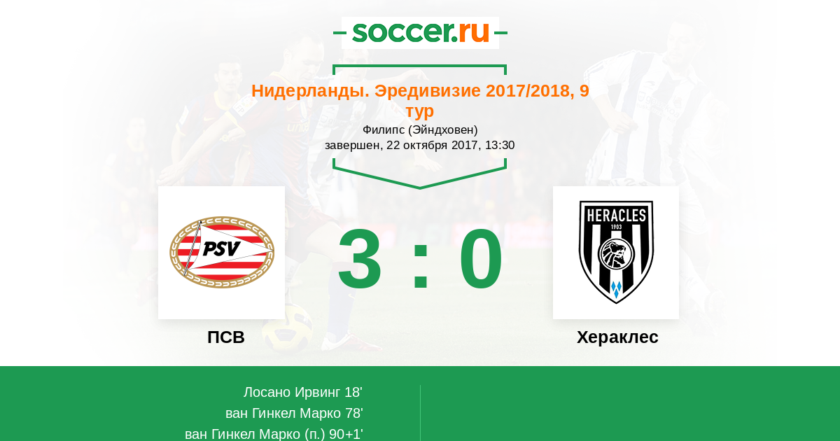 18' (1:0) Лосано Ирвинг (11) (Хендрикс Йоррит (8))
