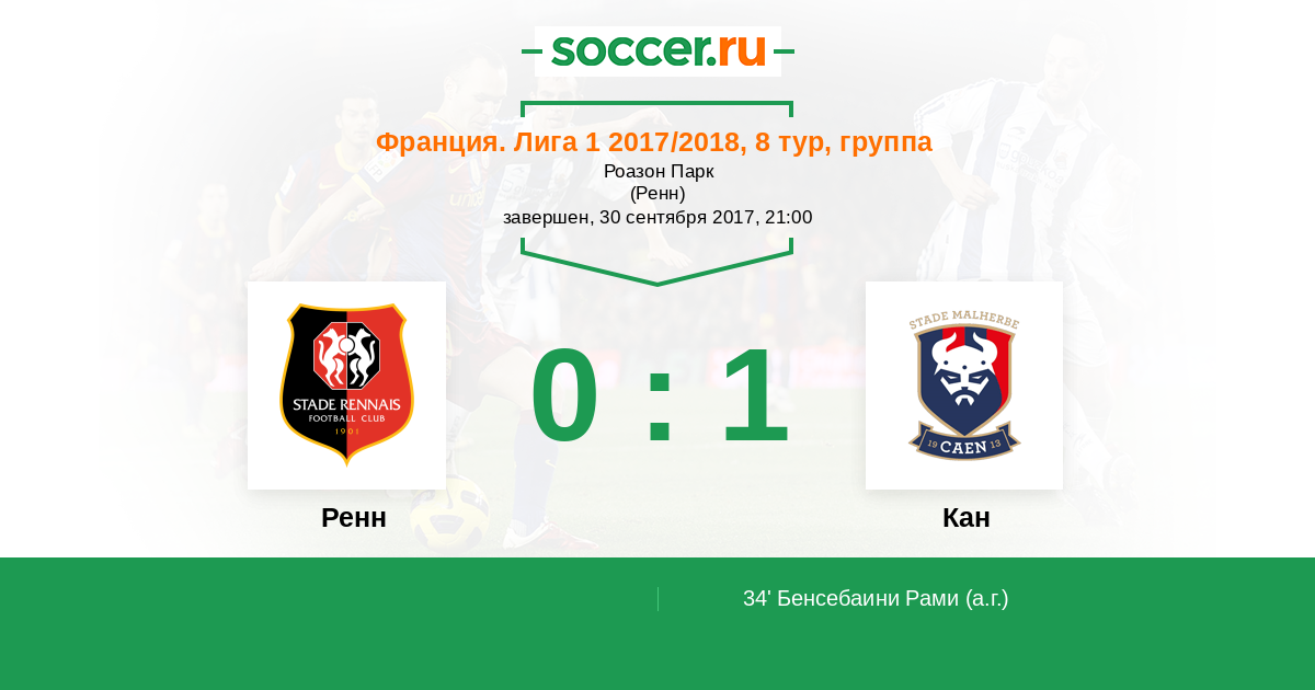 34' (0:1) Автогол Бенсебаини Рами (15)